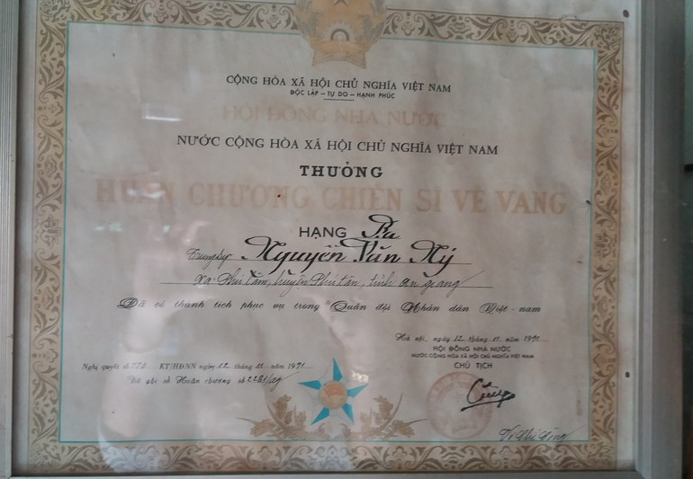 bụng. Đến tháng 10 năm 1985, chú được đưa về địa phương, đoàn tựu với gia đình. Chính vì sự trung can, nghĩa đảm đó, chú xứng danh là Bộ đội cụ Hồ. Được Đảng và Nhà nước trao tặng nhiều Huân chương và bằng khen cao quý như: Huân chương chiến sĩ vẽ vang hạng ba và Bằng khen của Bộ trưởng Bộ Quốc Phòng.