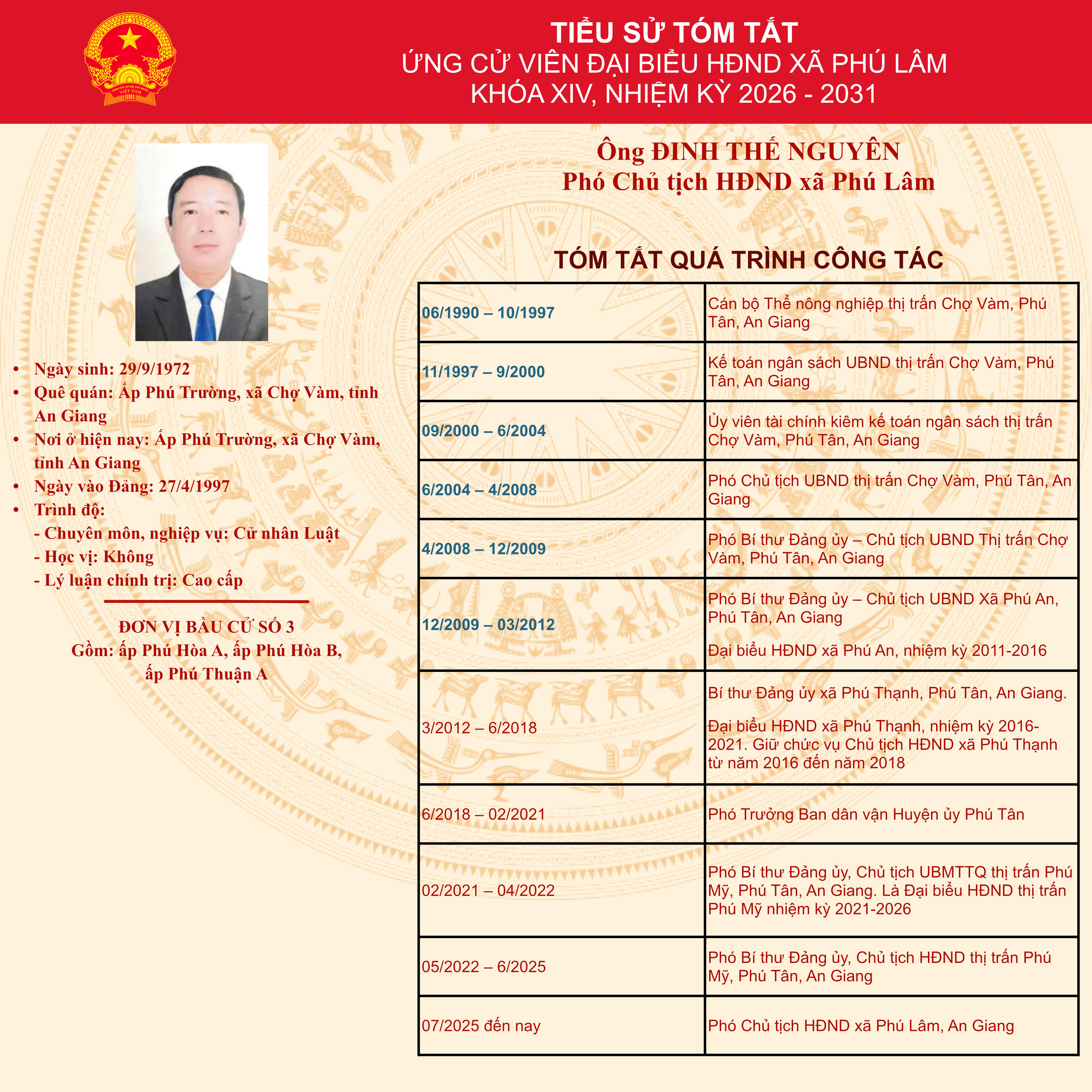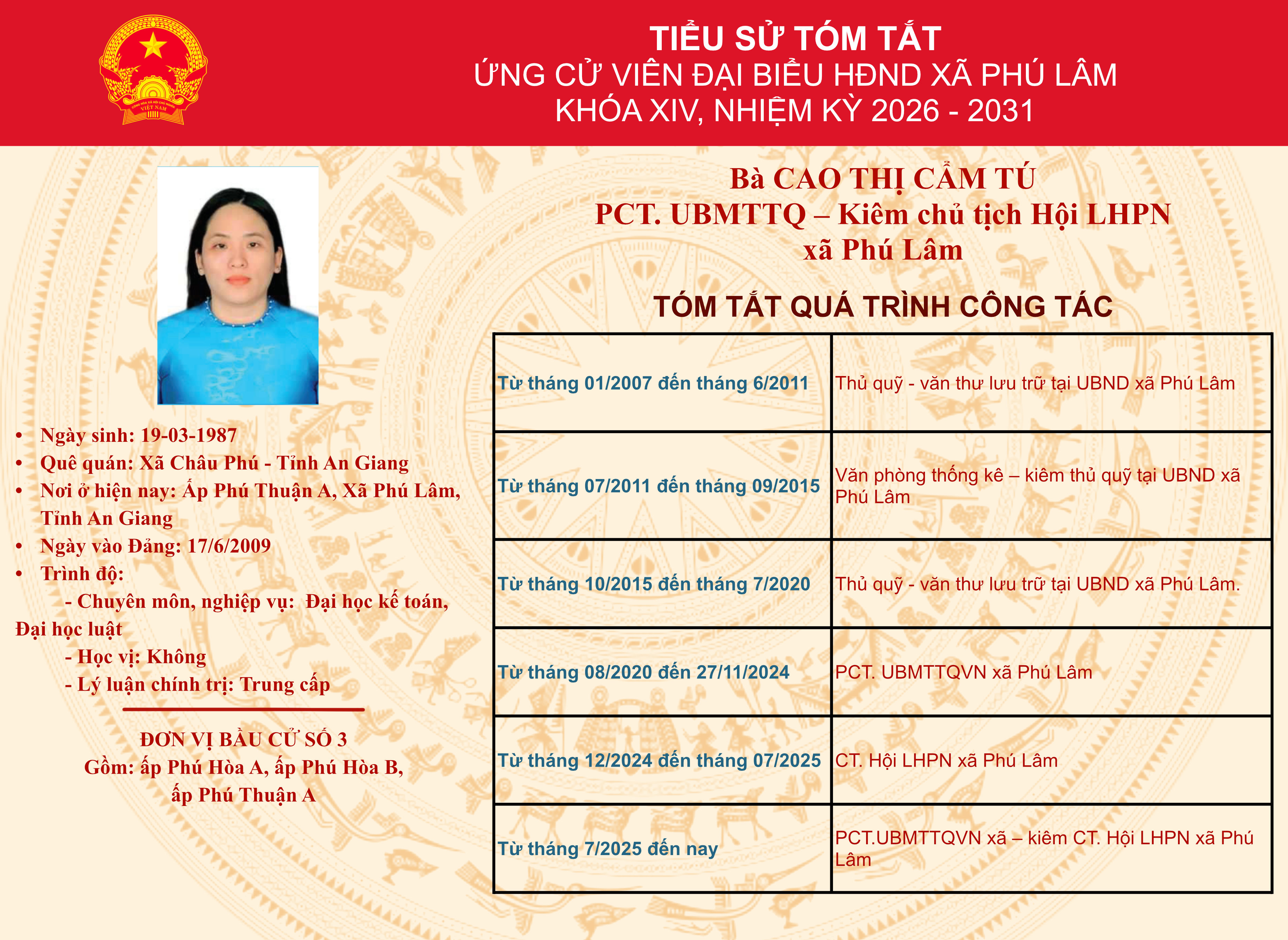 Tiểu sử tóm tắt ứng cử đại biểu hội đồng nhân dân xã Phú Lâm đơn vị bầu cử số 3