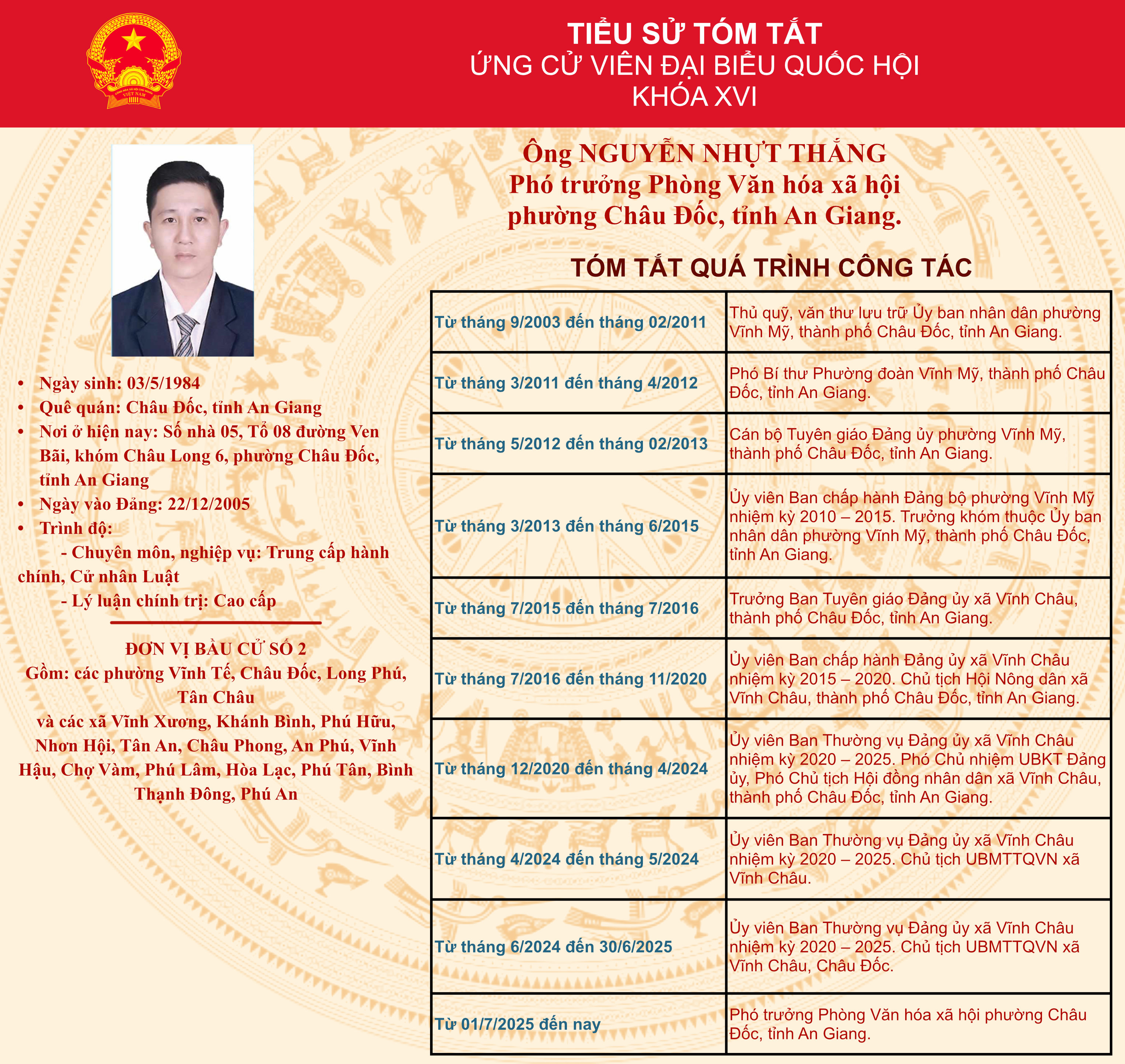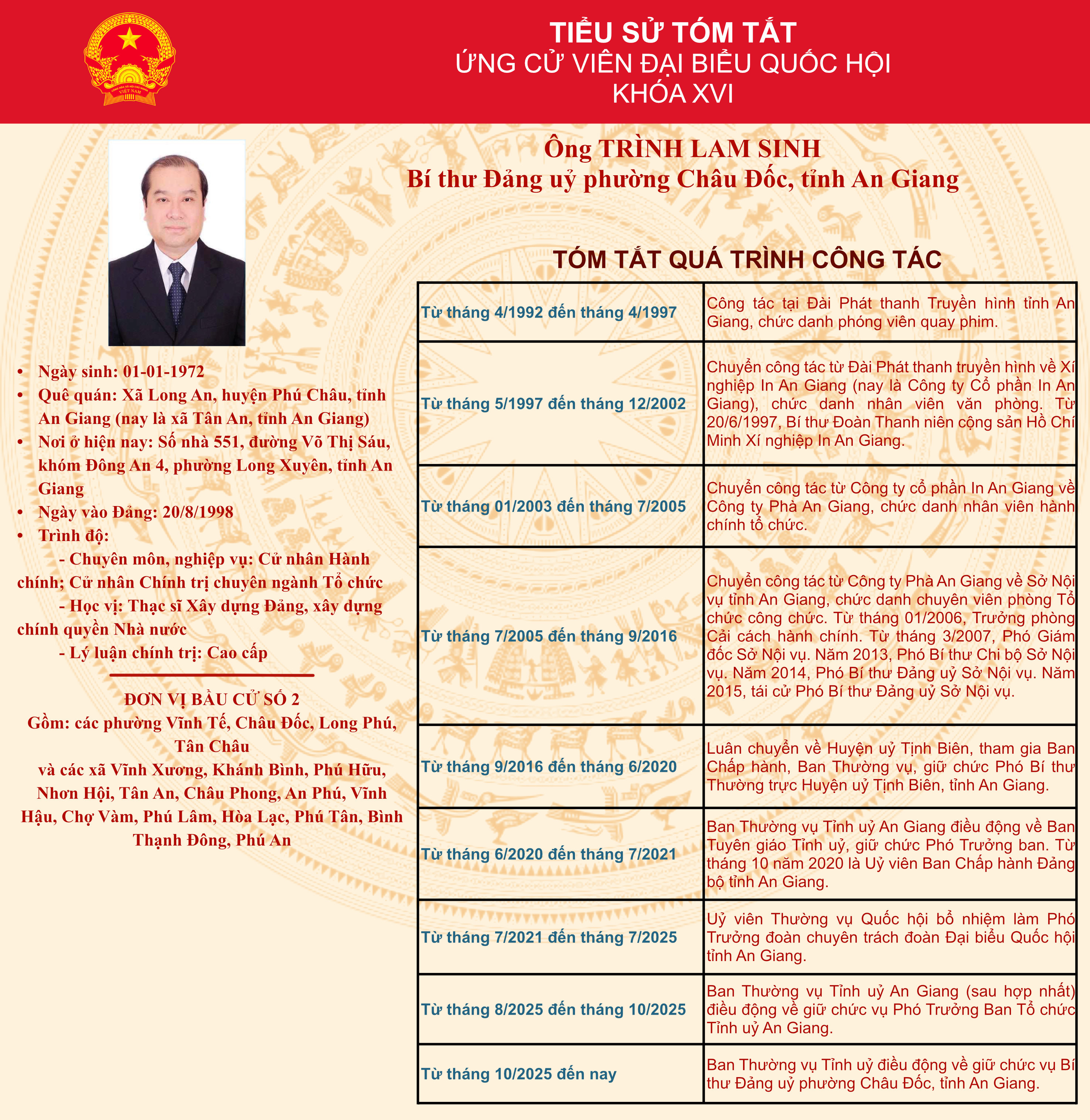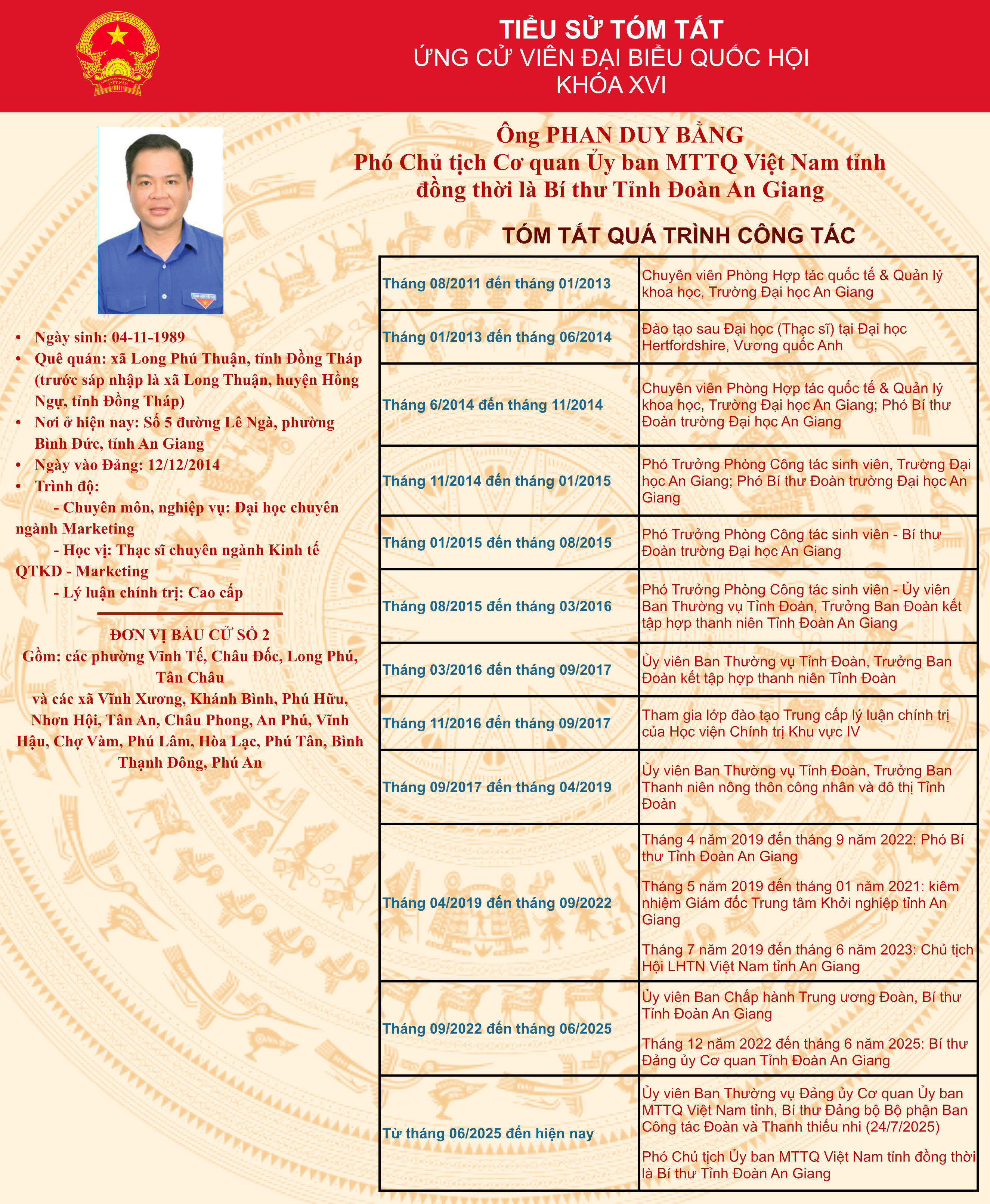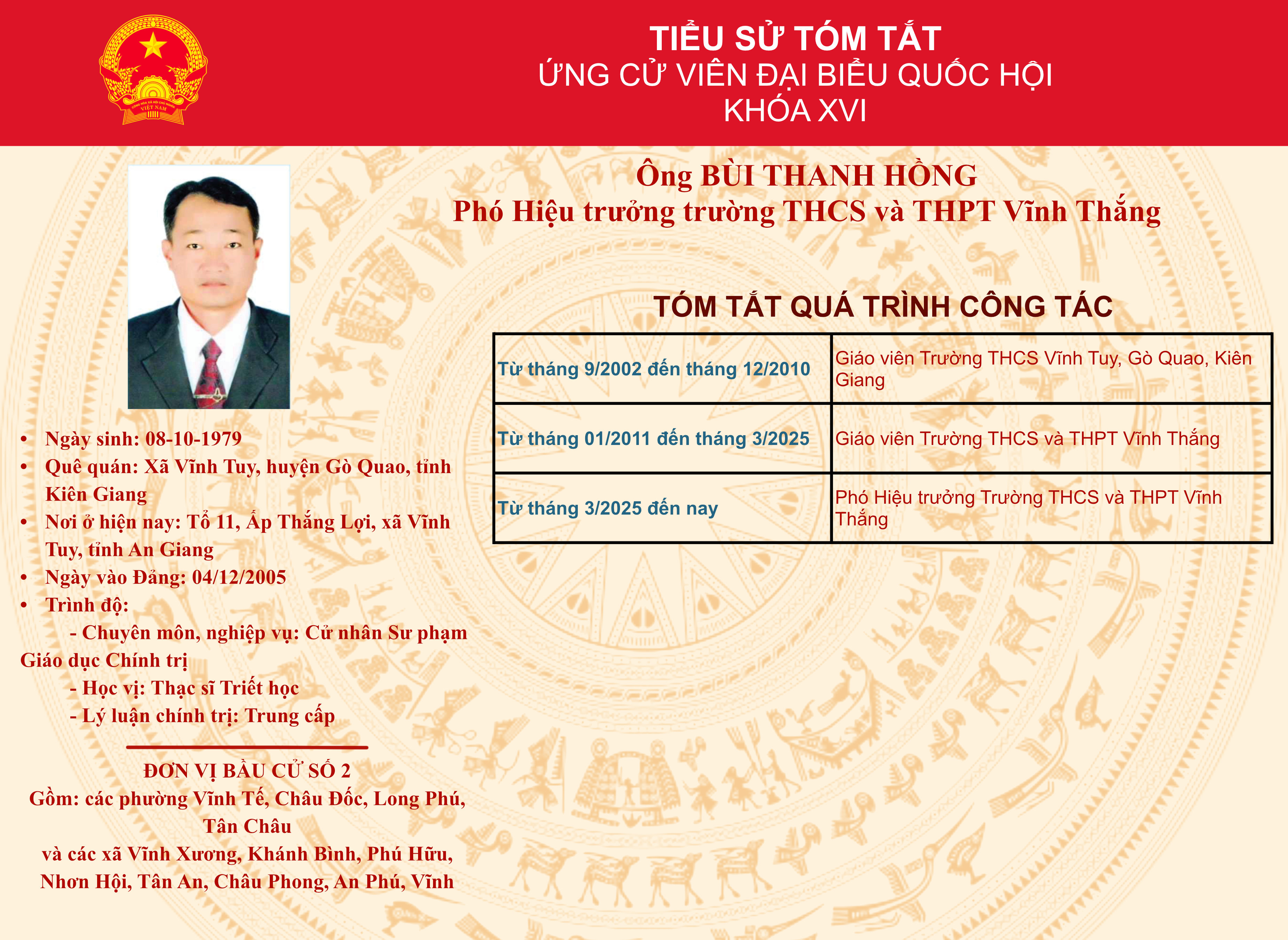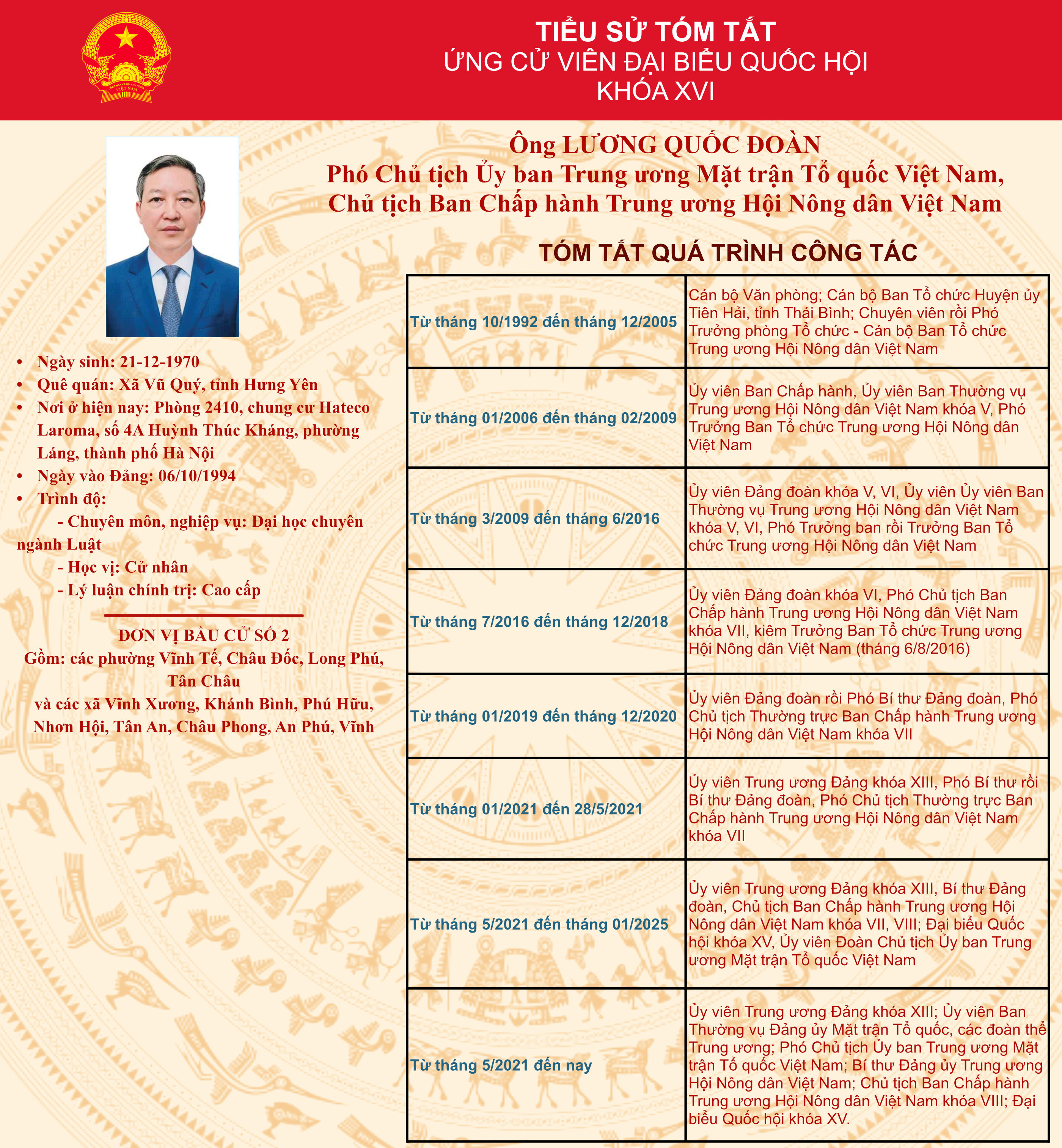 Tiểu sử tóm tắt ứng cử đại biểu Quốc hội khóa XVI đơn vị bầu cử số 2